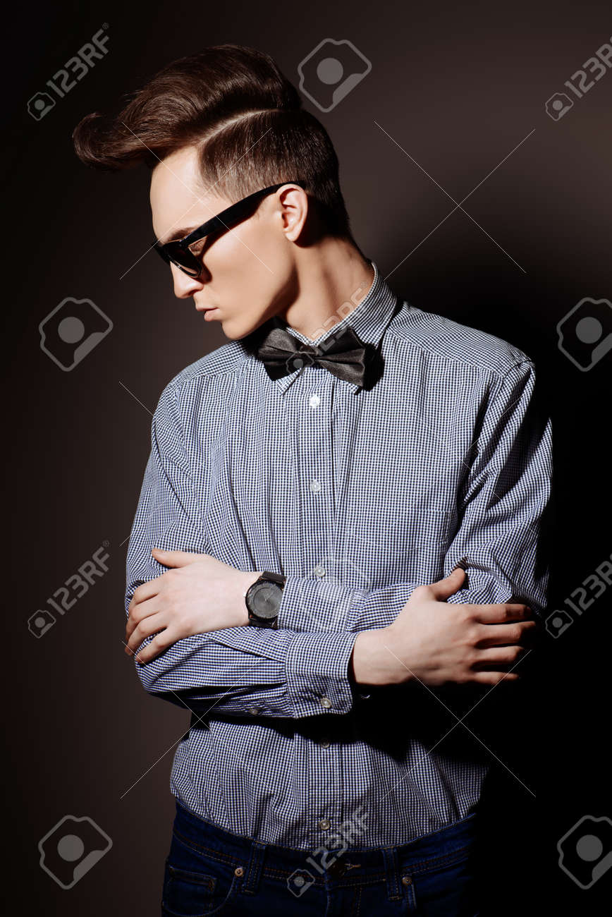 Fashion Studio Shot Of A Handsome Male Model With Stylish Hair