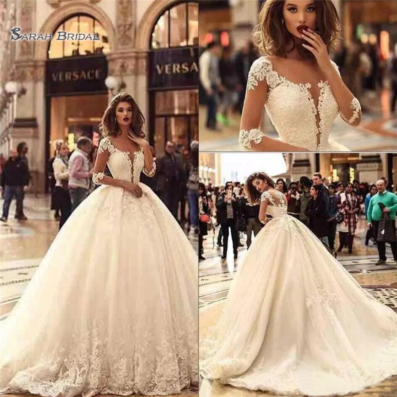 2019 Noble Half Sleeves Ball Gown Wedding Dresses 2019 Appliques And Lace With Button Back Bridal Gowns From Sweet Life 180 91 Dhgate Com
