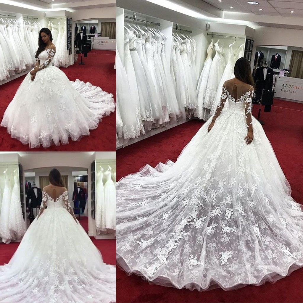 Vintage Vestido De Noiva Long Sleeves Wedding Dresses 2018 Lace Appliques Ball Gown Bridal Gowns Cathedral Train Robe De Mariage Cotton Wedding Dress