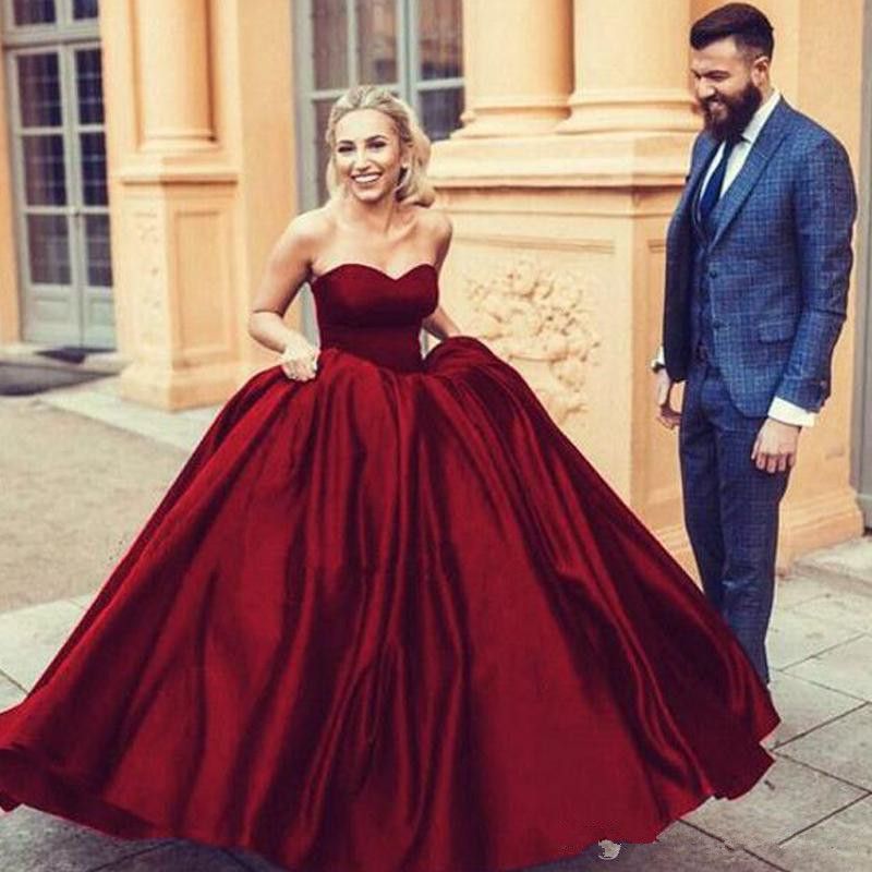 Elegant Colorful Wedding Dresses Fit And Flare Burgundy Ball Gown Wedding Dress Sweetheart Sleeveless Floor Length Arabic Bridal Wear Custom Ball